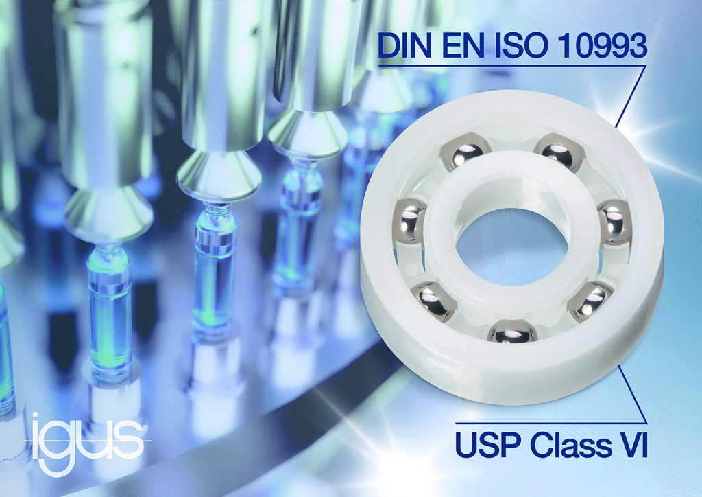 In medical and pharmaceutical technology, machine and plant engineers are increasingly replacing metal components with counterparts made of high-performance plastic. The advantage is that igus xiros series ball bearings operate without lubrication and are maintenance-free while remaining low-friction and hygienic. A common difficulty is that not all plastics are suitable for all medical-technology applications. So far, manufacturers have often had to plan time and costs for new assembly certification.