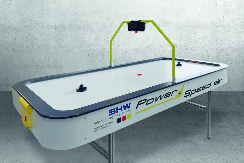 Air hockey is considered a classic game, especially in the United States. The idea originated in the 1970s. Air hockey was to be made accessible to everyone. This is how the tables the size of a billiard table came into being, on which two to four players try to hit a puck into the opponent’s goal. Air is blown through many small holes under the table, creating a cushion of air on which the puck glides very quickly, with virtually no frictional losses.