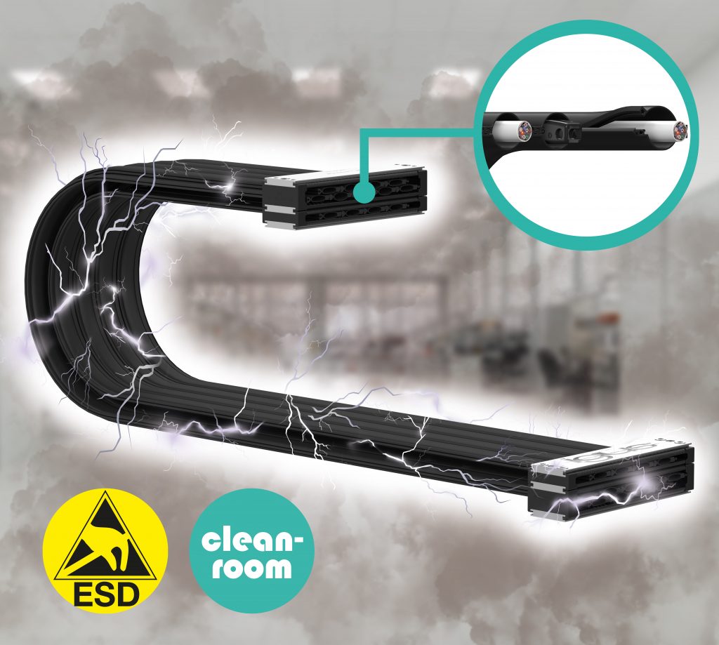 igus is adding an electrostatically dissipative variant to its almost particle-free e-skin flat cable carrier series
