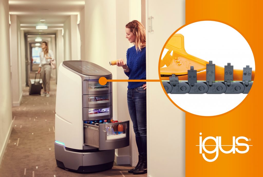 Robotise Technologies’ autonomous robot waiter uses space-saving cable carriers from igus