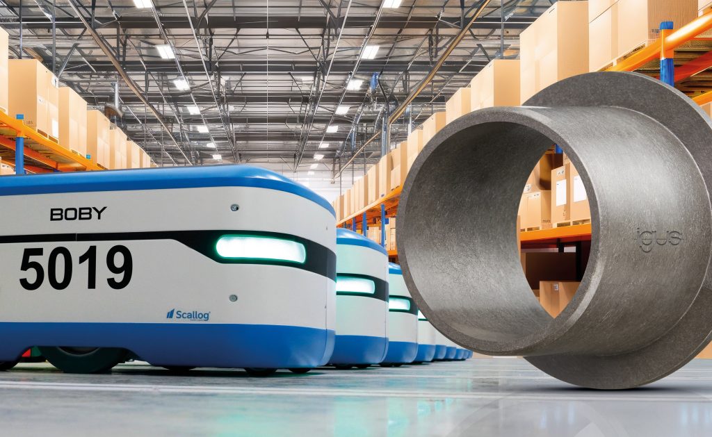 Scallog’s Autonomous Robot Employs igus Polymer Bearings to Transport Shelves Weighing 1,325 pounds