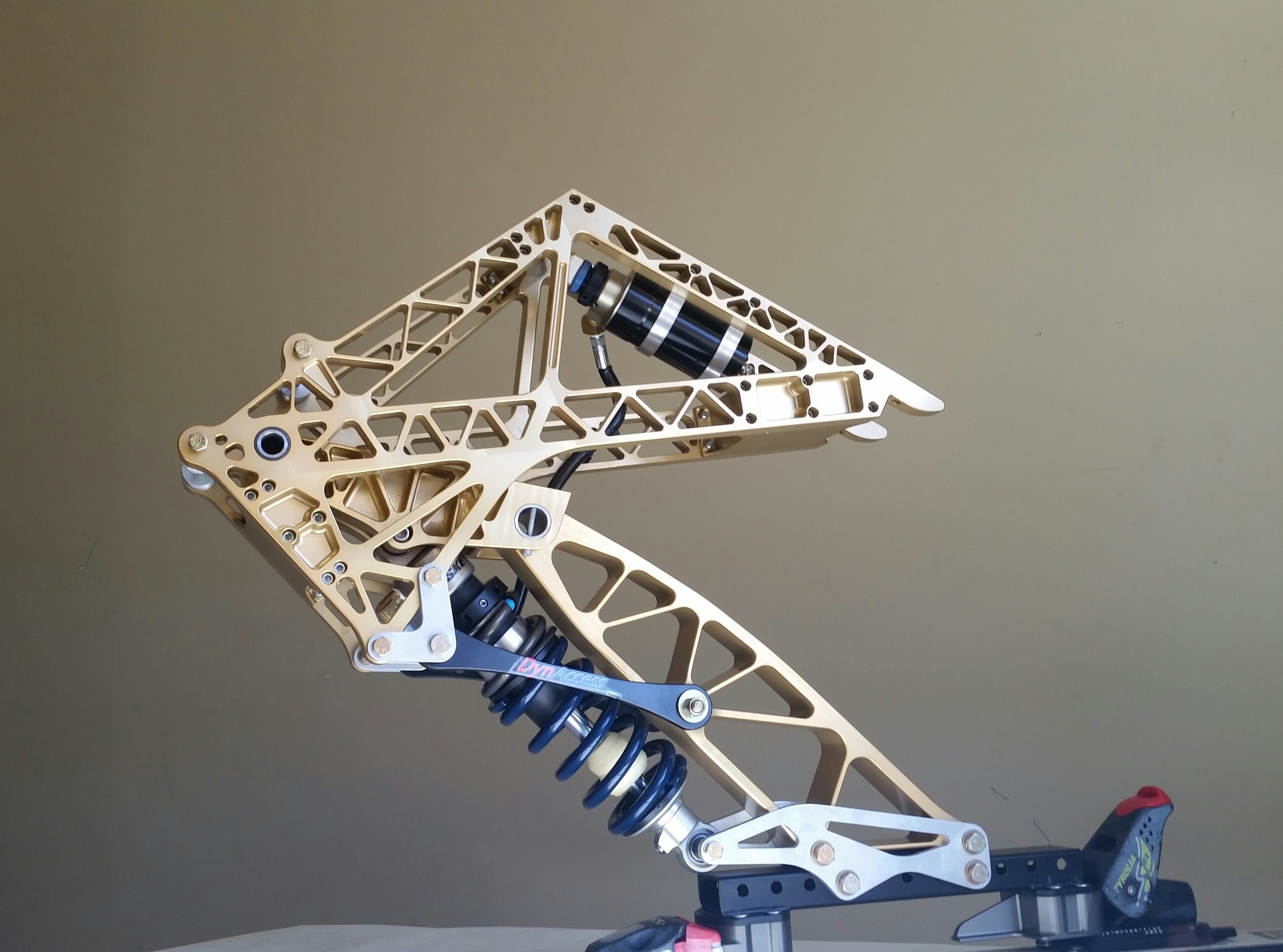 All DynAccess models are equipped with Penske Racing shocks. The shock absorbers are specifically developed for monoski applications. All of the shocks are hand-built by Penske technicians to order from DynAccess, and they all undergo dyno-testing. “Paraplegic skiers can’t use their legs to absorb shocks, so the ski has to do the work,” Grenestedt said.