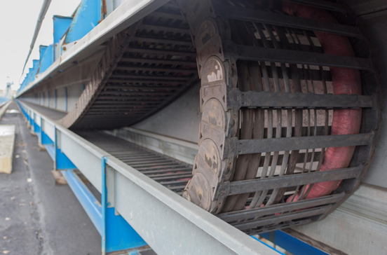 Before the igus® energy chain was installed at Tušimice, a traditional cable drum was used. The system caused failure and unplanned downtime due to the cables constantly freezing up during winter weather. Since the e-chain® was installed, it has been operating for ten years without fail and only visual inspections needed. Over the years, just ten crossbars have been replaced, which takes seconds.