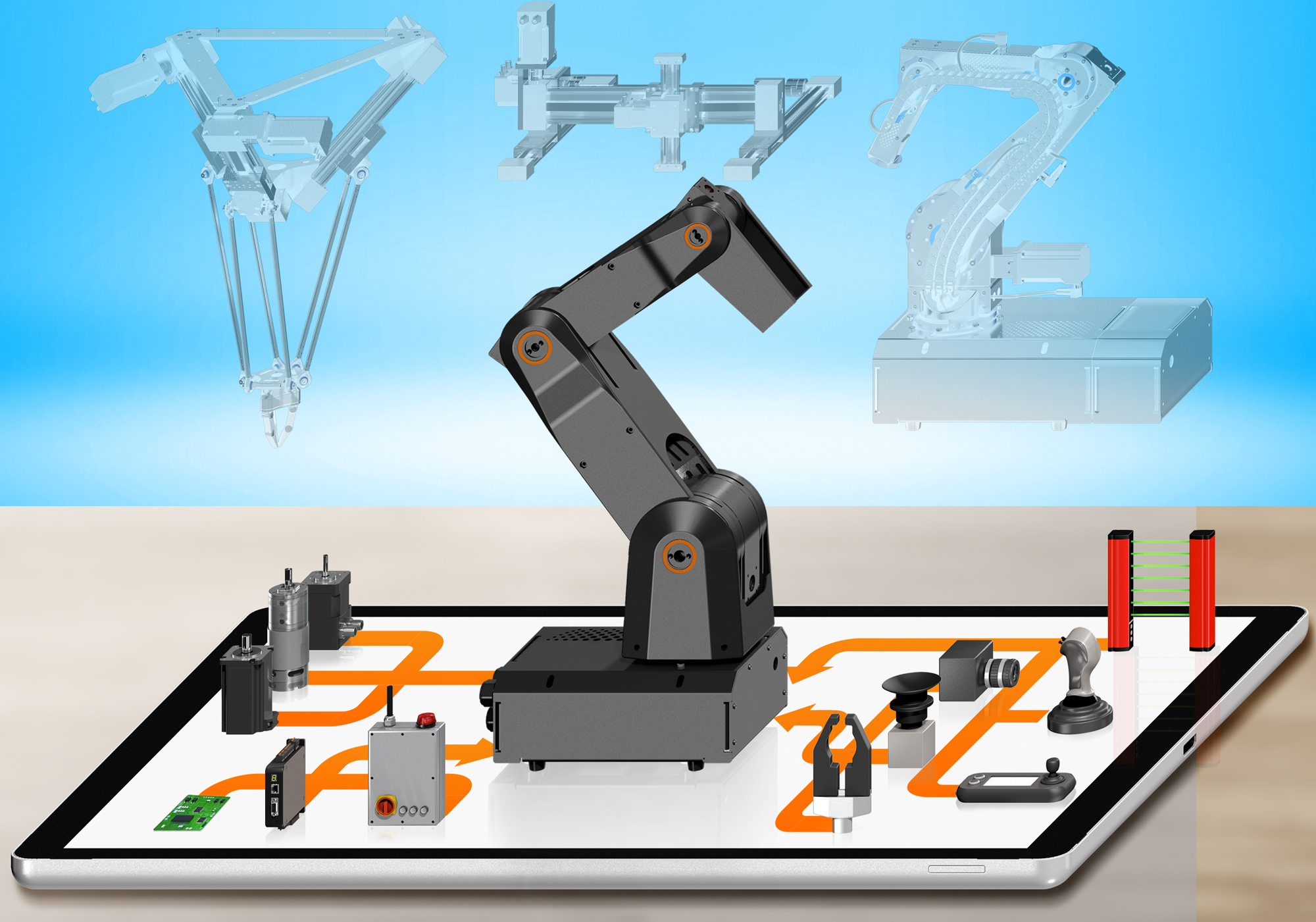 Low-cost robotics, an term created by igus® to describe the significant increase in production capacity due to affordable, simple and highly efficient automation technology, has evolved into one of igus®’s major product lines: Whether assembled from a kit system, consisting of a variety of robolink® components to be selected for one’s specific application requirements, or cost-effective and maintenance-free linear movement automation in form of gantry robots. igus® provides readily available automation that can be modified in a quick and easy manner and is low-cost from start to finish. Get to know the various robotic designs, and test your individual solution with the assistance of the robolink® expert.