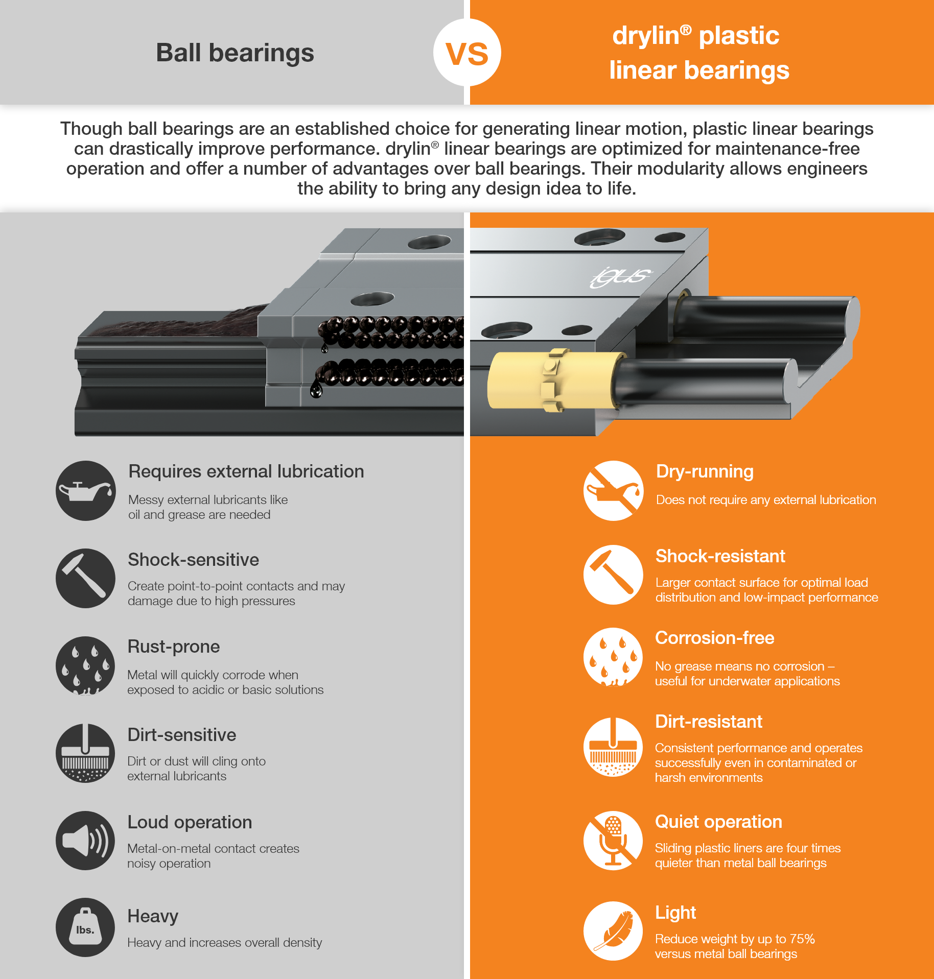 Polymer ball bearings in cleaning systems for photovoltaic installations