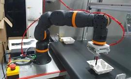 The ReBeL® cobot optimizes quality assurance in the packaging industry by precisely aligning cartons, stacking them neatly, and performing a visual quality check using an integrated camera.
