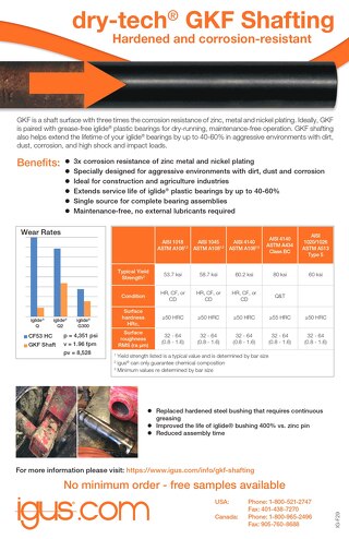 0:59 over 3 years iglide® GKF Corrosion-Resistant Shaft Surface | Brief Overview Introducing GKF shafting – a gas-nitrided shaft surface that is 3x more corrosion-resistant than zinc, metal & nickel plating. Watch to learn more about GKF. Watch Video