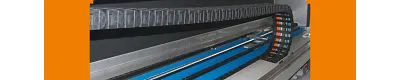 “We have been using pre-assembled energy supply systems for over a year on a turning and grinding machine,” says Oliver Fechner. This concerns a high speed finishing center for turning, grinding and polishing rotogravure cylinders, the 'Finishing Center CFM Compact'. The unit can be integrated with automatic production lines. It is used in the package printing sector. “We are setting standards in our industry with this finishing center,” adds Christoph Gschoßmann. Seven energy supply systems in total are used in the small series, of which two are pre-assembled “ReadyChains®”. Six move the axes, one the control cabinet. “For the die carrier, we rely on the ReadyChain® from the start. The speed of the tool shaft is about 9 m/min, the travel distance at about 2.5 m. Due to the positive experiences, we decided as the next step to also equip the movable control panel with the pre-assembled version,” says Oliver Fechner. “And our long-term objective is to have all six axes delivered as a complete mechanical sub-assembly to install on the finishing center ready for use. ” The energy supply system from Series 39 is used. This design represents the standard on chains of this size. The series offers the best compromise between ease of assembly, stability and costs for nearly all application areas. It is distinguished among other things by a dual stop system, is corrosion resistant and suitable for tight installation conditions. Even with long travel distances, a high unsupported length is achieved with this chain. “The enclosed chain design is used incidentally on the control panel, in order to protect the cables from chips, for example,” adds the mechanical engineer, Stephan Bobritz. “All other energy supply systems on the other hand are protected in the machine housing!” The pre-assembled energy supply system is made up of at least 150 individual parts: cable types, hoses, connectors, contacts, inscriptions. Among others, “Chainflex®” cables prove their all-round ability as highly bending-resistant control, encoder and converter cables. “As this finishing center involves a small series, we were able to produce the configuration with a reasonable outlay in this case. From our point of view now sells itself. The effort involved in ordering is much less for our purchase department. We only have to specify the order number now and get the pre-assembled energy supply system delivered on time for installation,” says Stephan Bobritz pointing out the economic benefits.