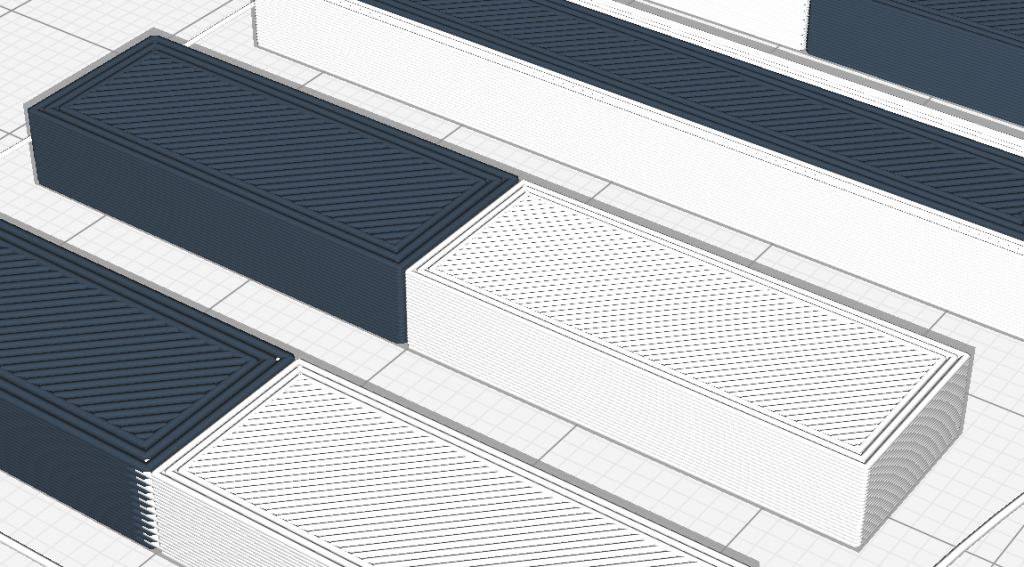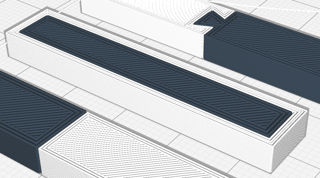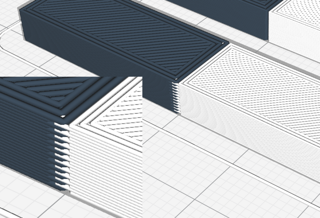 Tip: when slicing (creating the layer geometry), Cura prefers one material alternately in each layer, then the other material first. As a result, if the models overlap, there is an effect at the boundary layer, which can be seen in the graphic: the layers alternately overlap each other, thus interlocking the phases and significantly strengthening the bonding. This effect can be used in a well-dosed way; for example, you can design the solids “zero to zero” in the CAD system and thicken one of the bodies at the points where you want to achieve an overlapping, so that the models overlap.