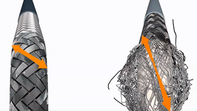 It is important for cables in linear applications to have a braided shield with a particularly flat braid angle. That's because the electromagnetic compatibility protection works consistently well during movement due to a shielding window that opens minimally in the radius.